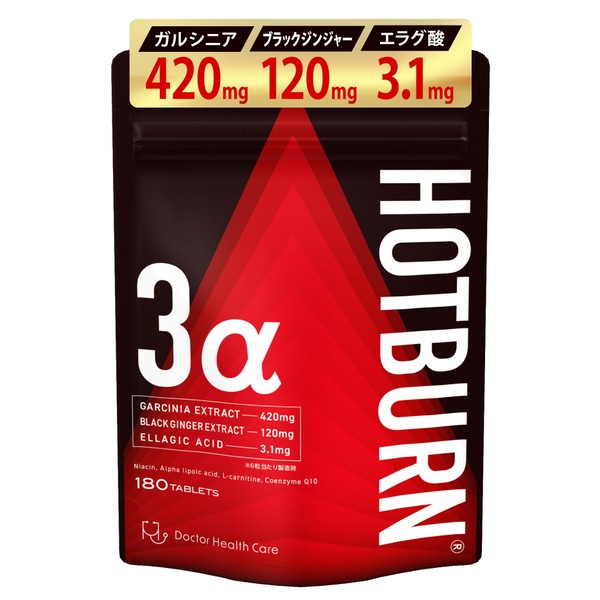 ホットバーン ガルシニア 420mg ブラックジンジャー 120mg エラグ酸 3.1mg ダイエットサプリ HOTBURN 180錠 30日分