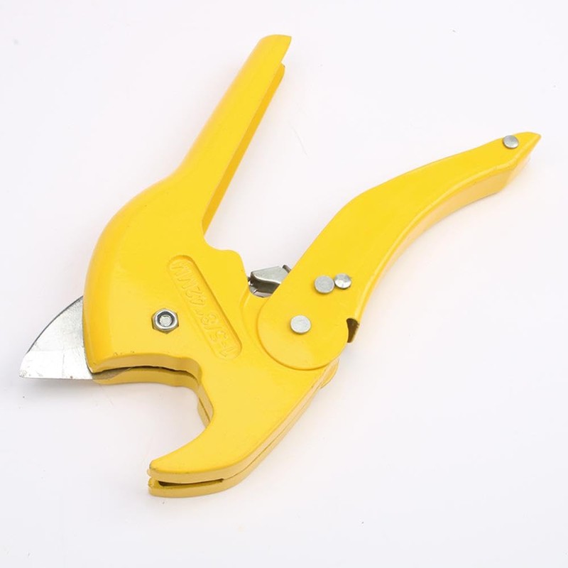 42mm PVC Pipe and Tube Cutter Tool, Ratcheting Hose Cutter One-Hand Fast Pipe Cutting Tool for Plumbers, Repairer (Yellow)