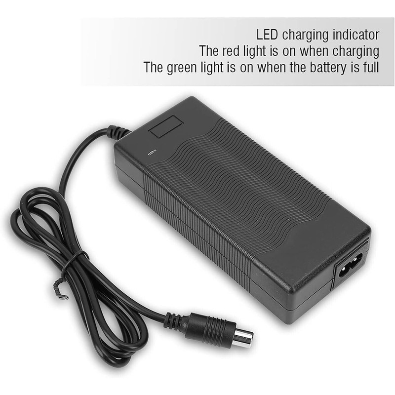 - Output: 42V 2A Max Power: 84W, 42V 2A (Also works for 2A, 1.7A, 1.5A, 1A, 0.5A) Charger for 36V Lithium-ion Battery. Input: 100-240VAC, 50/60Hz, 1.5A