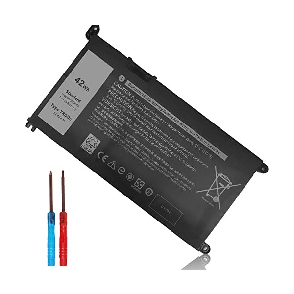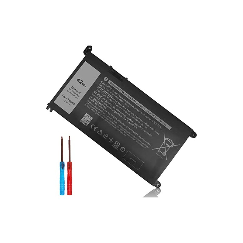 - SPECIFICATION : Model Name: 42Wh Standard Rechargeable Li-ion battery Type YRDD6; Battery Type: Lithium polymer; Voltage : 11.4V; Capacity : 42Wh; Cells: 3-Cell; Size about 6.85x3.5x0.25in, Weight: About 8OZ / 0.5lb; Condition : Brand New; Life span: About 300-500 discharge/charge cycles. Packages includes: 1PC YRDD6 laptop battery(with free screwdrivers for easy installation)
