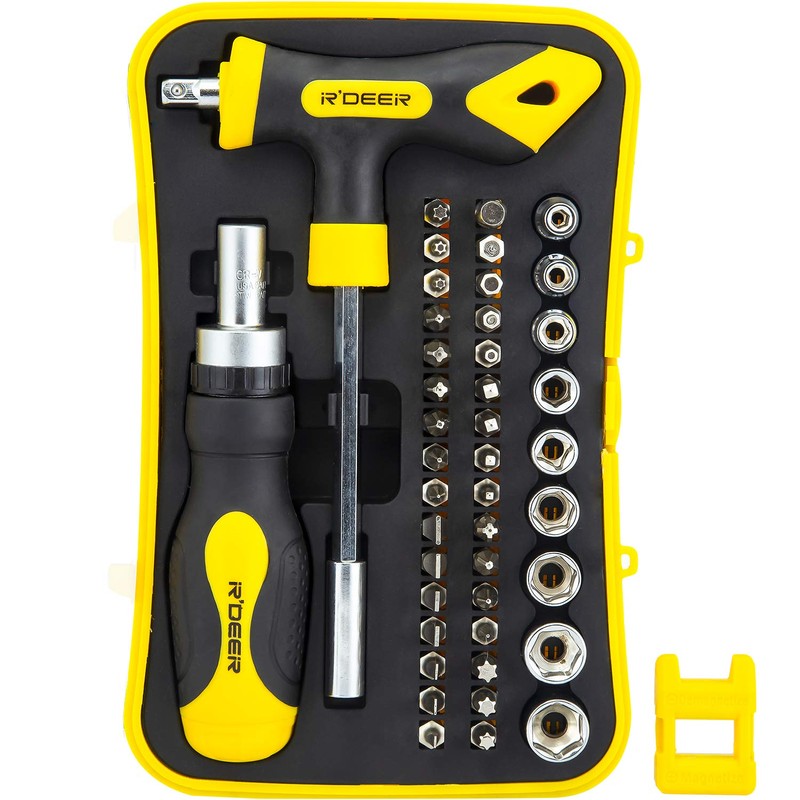 43 in 1 Ratchet Screwdriver Set R'deer T-handle Multifunction Nut Driver Socket Manual Repair Tools Kit