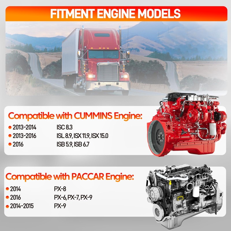 - Fitment: Compatible with 2013–2020 Cummins ISB6.7, ISX11.9, ISX15.0 and ISL8.9 engines. Replacement OEM part number: 4326874, 4326874RX, 2872946, 2872946RX, 904-6013 and 5WK96741B