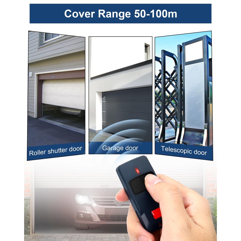 • Frequency: 433MHz, Transmission distance: 50-100 m. 2 buttons to control up to 2 garage door openers. The remote comes with batteries and is ready to use immediately upon receipt, making it a perfect replacement.
