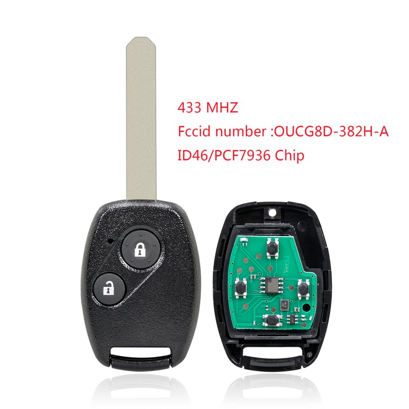 - RIGHT KEY FOB:2 buttons car key fob,ID46/PCF7936 Chip,FCCID:OUCG8D-382H-A,433MHZ.The Honda key fob can be programmed easily by locksmith or dealer.