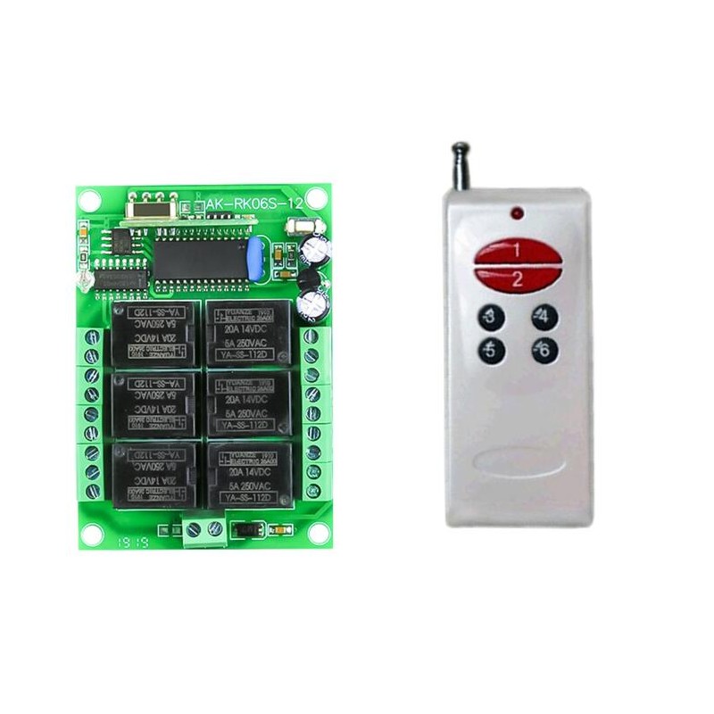 433Mhz DC 12V 6CH Channel Universal 10A Relay Wireless RF Remote Control Switch Receiver Module and 1PCS 6 Key RF 433 Mhz Transmitter Fixed Code (2262 Chip) Remote Controls Smart Home Automation