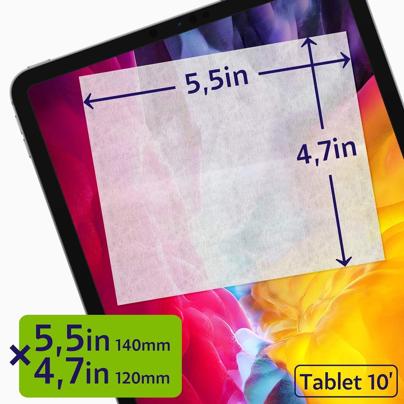 5.5x4.7 in / 14x12 cm DIRECTIONS: Gently brush away dust and dirt with the folded wipe. Unfold the wipe and gently clean the surface with circular movements until clean and dry. CAUTION: On a glossy surface, test on a small area first. Single-use only, please use new wipes if needed. A dirty or dry wipe can scratch the surface. Keep away from children. Not for use on contact lenses. Avoid contact with the eyes. If contact occurs, rinse eyes thoroughly with water.