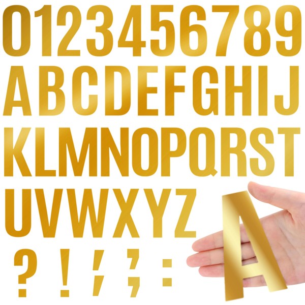 - Abundant Quantity with 42 Sheets:You will receive 42 sheets gold letter and number stickers,441 pieces total.The letter or numbers have a approx 4 inch height,the suitable size and sufficient quantity allows your yto use for multiple requiements,like mailbox,house address,bulletin board,poster,classroom decorations and more