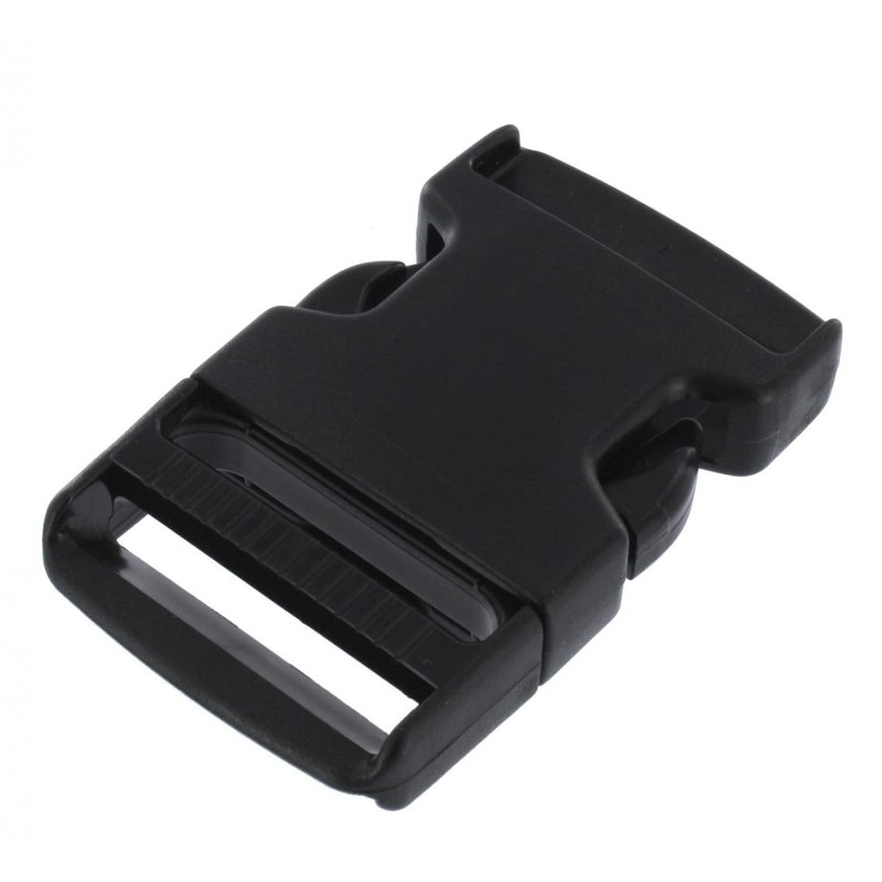 • Duraflex Mojave Plastic Side Release Buckle, Single Adjust Male: 4494 Female: 4507 Color: Black Size: 1 1/2" (refers to inside dimension) Material: Acetal Plastic Product Disclaimer: Buckleguy nor the manufacturer of the Duraflex plastic components provide strength test reports for their items. All testing needs to be performed by the individual user.