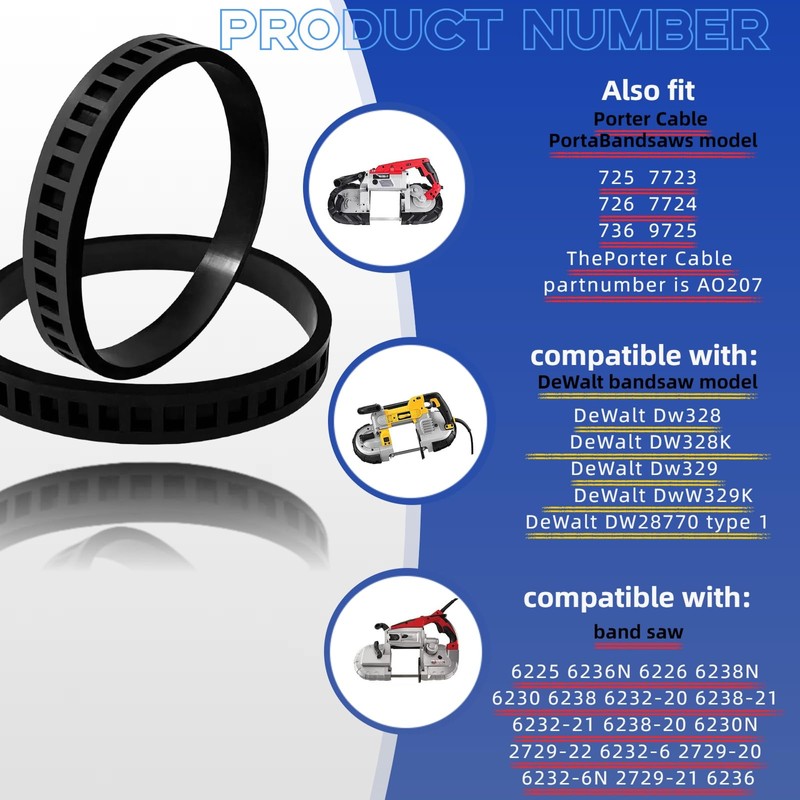 - [ Compatibility ]: These Tires Are Also Compatible With The Following Dewalt Band Saw Blade Models: DW328, DW328K, DW329, DW329K, And D28770 Type 1. Additionally, They Are Compatible With Porter-Cable Band Saw Parts Including Models 725, 726, 736, 7723, 7724, And 9725