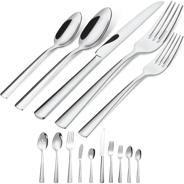 - Luxury and Lustrous Design: Unique yet extraordinary, this versatile stainless flatware cutlery set features a gleaming mirror polish which requires no repolishing. Elegant design and superior quality makes this silverware set suitable for kitchens,restaurants, events, and everyday meals