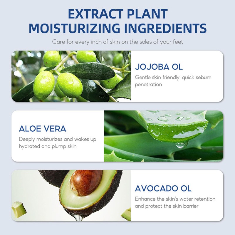 Moisturizing and hydrating: in moisturizing ingredients, it can deeply moisturize the foot skin, replenish , and increase skin content.