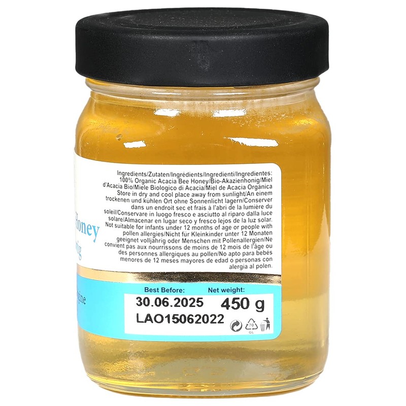 • Organic acacia blossom honey from Bulgaria.