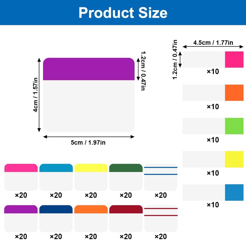 - Was Sie bekommen werden: Sie erhalten 400 Blatt haftnotizen tabs und 50 Blatt kleine beschreibbare sticky klebezettel, insgesamt 450 Blatt. The sizes are: 4cm x 5cm; 1.2cm x 4.5cm. Sie können die verschiedenen Größen der beschreibbare haftstreifen mischen und anpassen, perfekt zum Organisieren und Hervorheben wichtiger Informationen in Notizbüchern, Ordnern und Büchern.