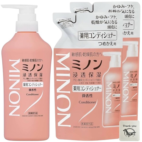 • ミノン 薬用コンディショナー 敏感肌 かゆみ フケ 保湿 乾燥対策 弱酸性 低刺激性 本体 450ml 1個 + つめかえ用 380ml 2個