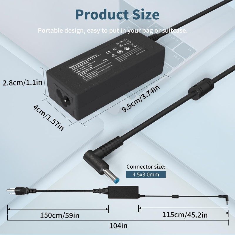 - Wide Compatibility: HP laptop 45W Charging Fit for HP Pavilion charger, HP Notebook charger, HP Spectre x360 charger, HP Stream charger, HP Probook charger, HP Chromebook charger series and more 45W ac tip adapter power supply.