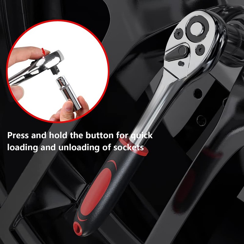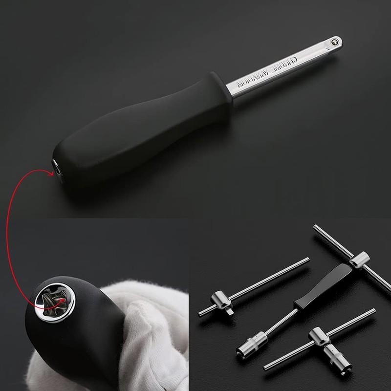 - 【Easy to Use】-Quick release switch and reversible mechanism for easy operation.Ergonomic handle,slip resistant,oil resistant,corrosion resistant,more comfortable to use.Quick release button,press and hold the button to attach or detach the sleeve,easy one-handed operation. it really changes the game for your tinkering, you can output much more torque than with puny allen keys!
