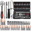 46 PCS Socket Wrench Set, Mechanic Tool Kit Quick-release Ratchet, 1/4" Drive Bit Metric Combination Tools for Auto Repairing & Household with Storage Case