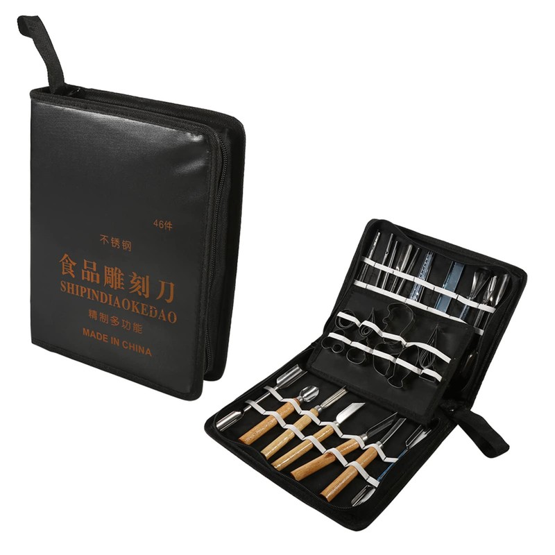 46 Pieces Kitchen Carving Chisel Chef Tools Fruit Vegetable Food Peeling Set Kitchen Chisel Garnish Tools with Carry Bag