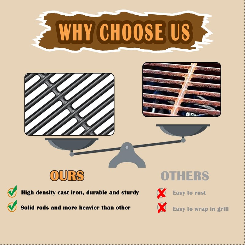 - ⭐Upgrade to cast iron grill grates for superior heat distribution, impressive searing capabilities, and easy maintenance, all tailored to fit your charbroil 17 inch grill grate.