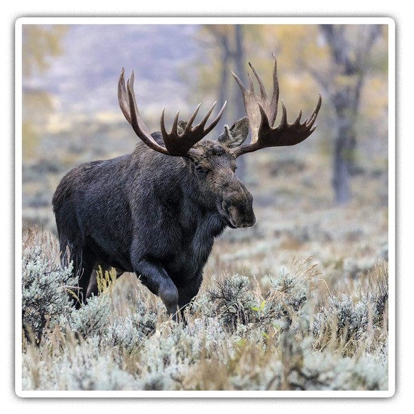 46433 Square Stickers (Pack of 2) 10cm - Wild Bull Elk, Alaska, Canada, Funny Stickers for Laptops, Tablets, Luggage, Scrapbooking, Refrigerators