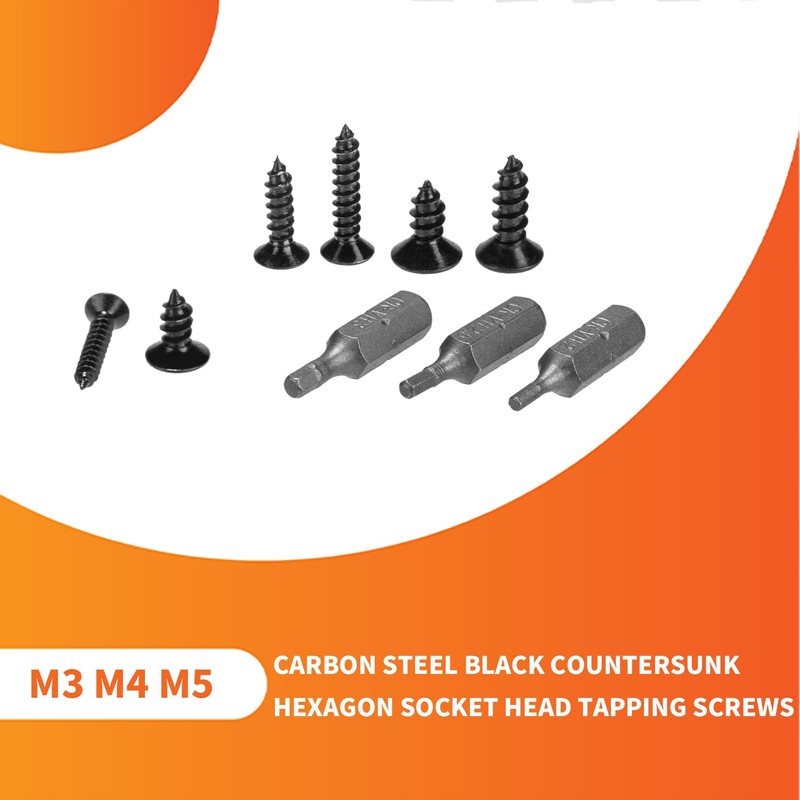 465 Pcs Wood Screws for Wood Screws Assortment, M3 M4 M5 Flat Head Self-Tapping Screws Metal, Countersunk Head Hex Socket Head Cap Screws for Wood, Doors, Mechanical, Black Screws with 3 Bits