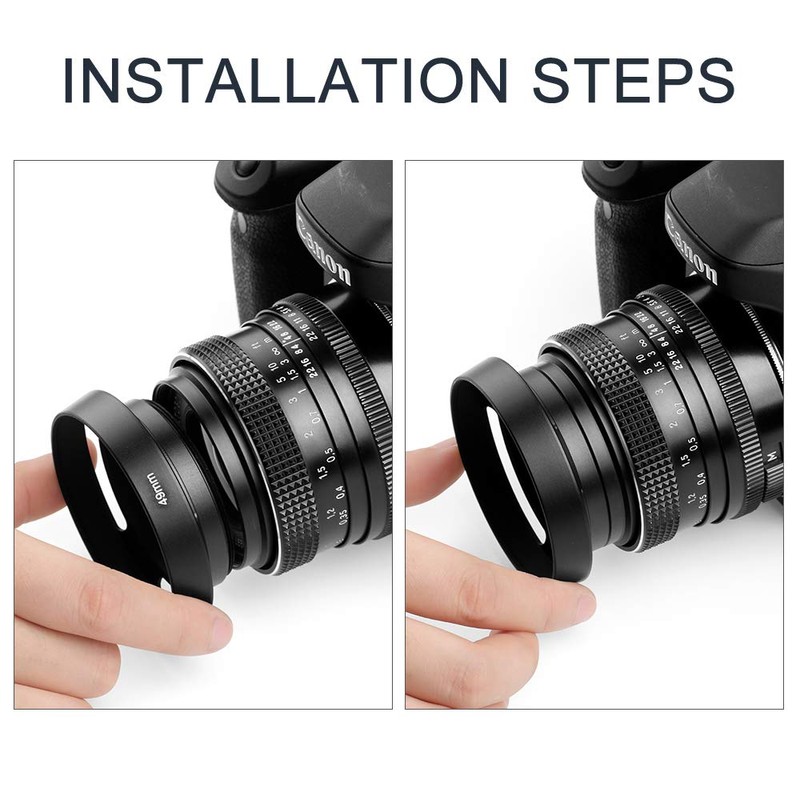 - [Function]: Screw metal lens hood not only improves image quality, but also helps protect the lens.Get your pictures better contrast and better image quality, prevent unwanted light or glare into your lens when shooting.