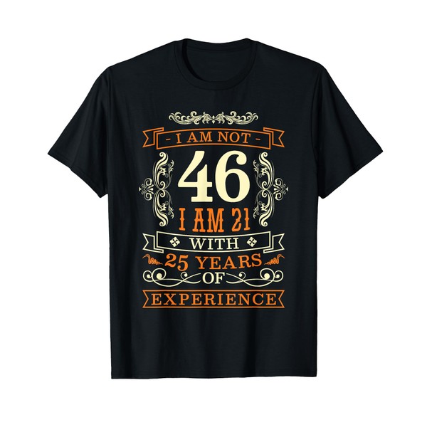 - I am not 46 I am 21 with 25 years of experience. Outfit for women and men on their 46th birthday. Great birthday party outfit for 46 year old birthday child. Perfect for born in 1975 or born in 1974. Funny Birthday Gift for Parents.