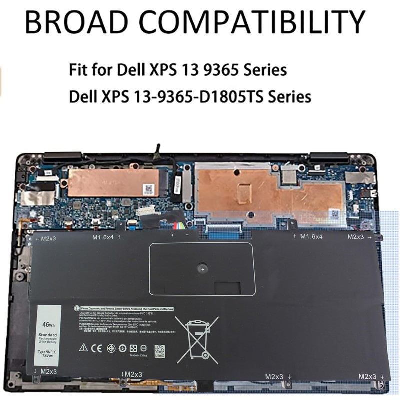 - 7.6V 46WH NNF1C Laptop Battery fit for Dell XPS13, Dell XPS 9365 2-n-1, Dell XPS 13 9365, XPS 13 9365 2 in 1, Dell XPS 13 2 in 1, Dell 9365, Dell 2 in 1, XPS 13-9365-D1605TS 13-9365-D1805TS 13-9365-D2805TS 13-9365-D3605TS 13-9365-D3805TS 13-9365-D4605TS .