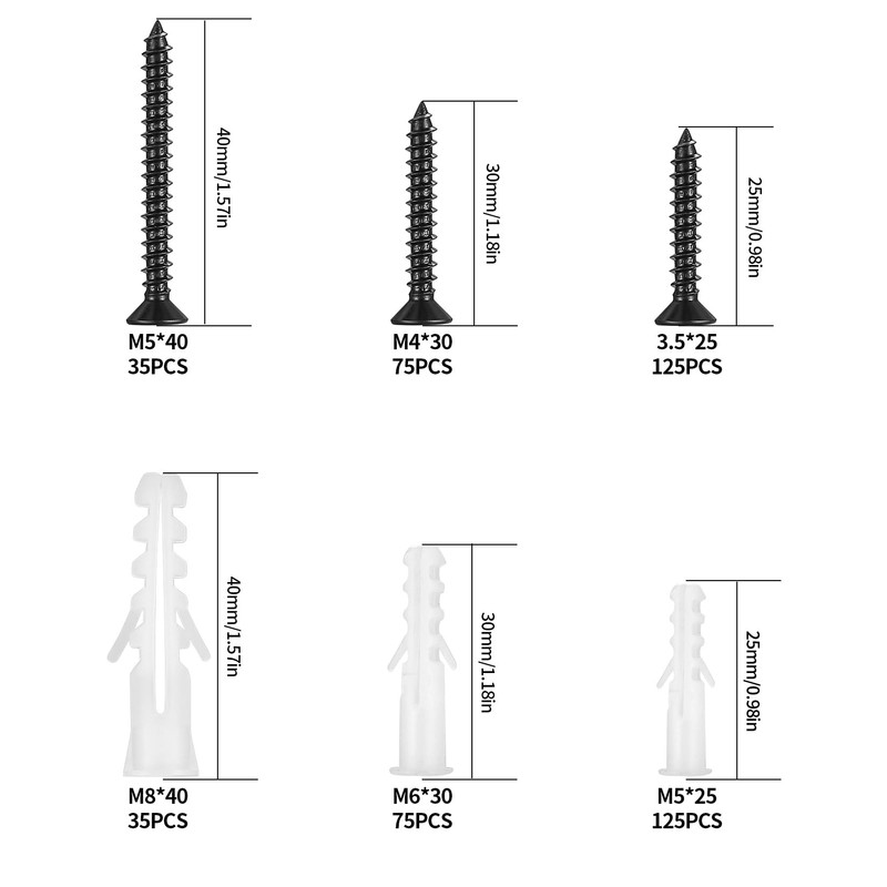 - Package includes: a total of 470 pieces, screws include 75 pieces M4 x 30 mm, 125 pieces M5 x 25 mm, 35 pieces M5 x 40 mm, 75 pieces M6 x 30 mm, 35 pieces M8 x 40 mm and 125 pieces dowels 3.5 x 25 mm, which meet the requirements of multiple scenes. ararien and ararien will