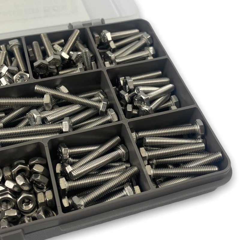 475 ASSORTED PIECE, A2 M4 FULLY THREADED BOLTS NUTS WASHERS SCREWS STAINLESS KIT