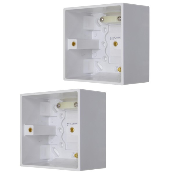 47mm Back Box 1 Gang Deep Surface Pattress Backbox with Earth Terminal and Cord Grip for Shaver Socket, Shower Pull Switch, Cooker Switch (2)
