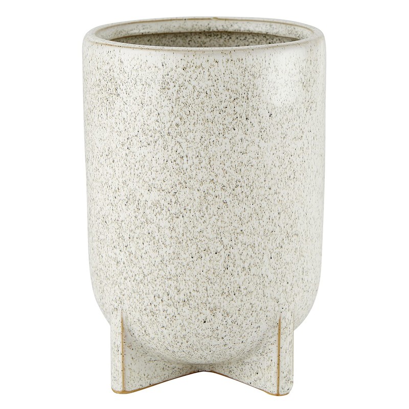 - FOOTED CERAMIC POT: With a white speckled finish; contemporary design suits a variety of décors