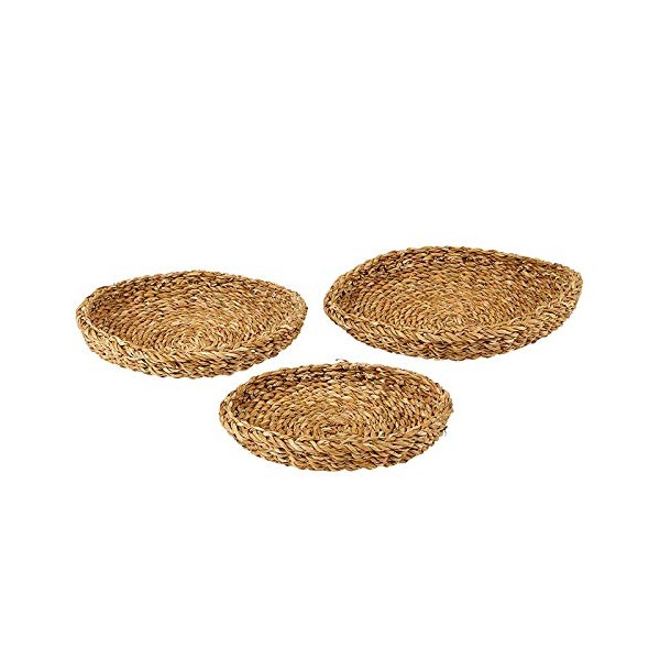 - SET OF THREE: Sea grass tray baskets are perfect for displaying as well as serving; Use as addition to décoration in living room, dining, kitchen or bathroom