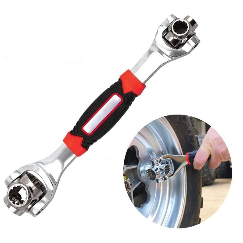 48-in-1 Multifunctional Tiger Multi-Socket Wrench, Multi-angle Dog Bone Wrench with 6 Corners 360-Degree Rotating Head Rubber Handle