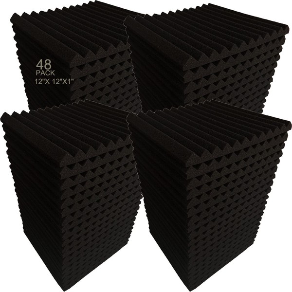 48 Pack Black 12 "X 12 "X1" Acoustic Panels Studio Soundproofing Foam Wedge Tiles,