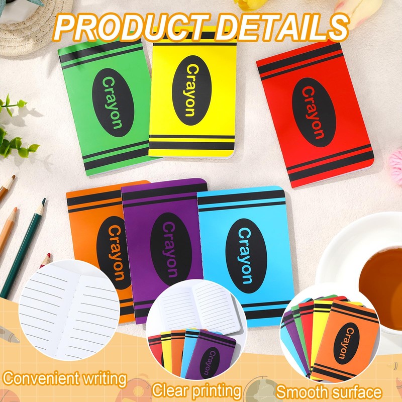 - Premium quality: Made with high-quality paper, these back to school small crayon notebooks offer a smooth writing experience. Each crayon pattern mini pocket notepad contains 32 lined pages, providing plenty of space to jot down your ideas, notes, and thoughts. The vibrant cover print is designed to resist fading, ensuring long-lasting use.