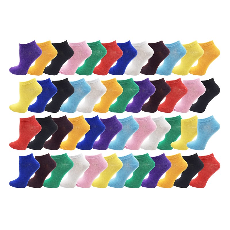 - 48 PAIRS ANKLE SOCKS FOR WOMEN : Each pack includes 48 pairs of low cut ankle socks for women. Made with a quality polyester blend, these socks are perfect for the casual wearer or for athletic use. 48 Pairs ensures that you never run out of socks! Take these to the gym, work, or for everyday casual wear. An essential and staple in every wardrobe.