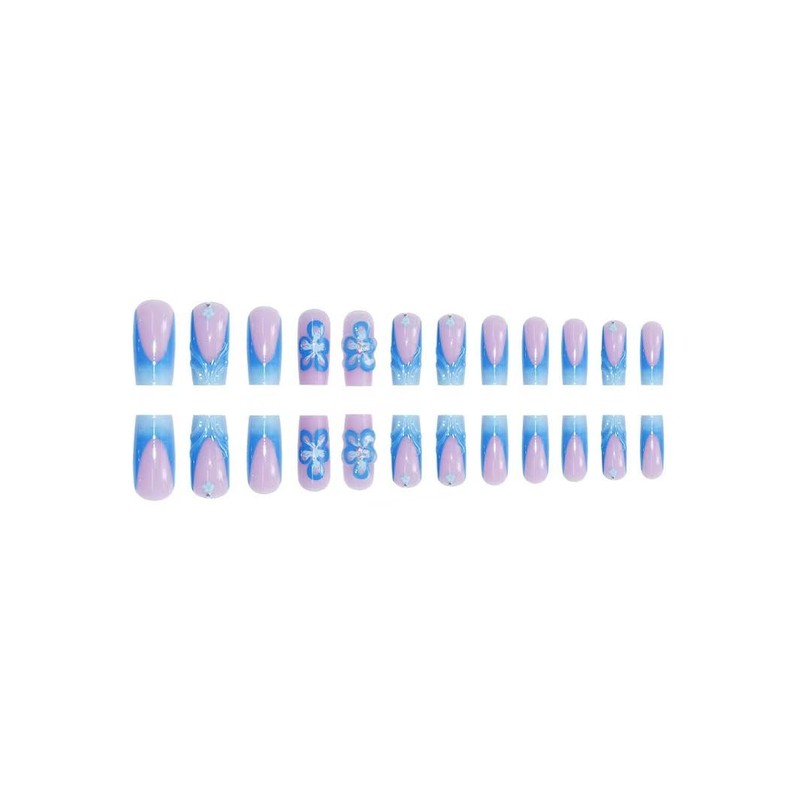 - Material:The blue french tip press on toenails are made of soft gel acrylic ABS,friendly material, does not hurt hands, not easy to break.The fake nails colors and patterns are all new and popular elements of the season, glossy reusable acrylic full cover stick on nails,use the nail glue sticker we gave you,stick on nails is brings you a comfortable experience