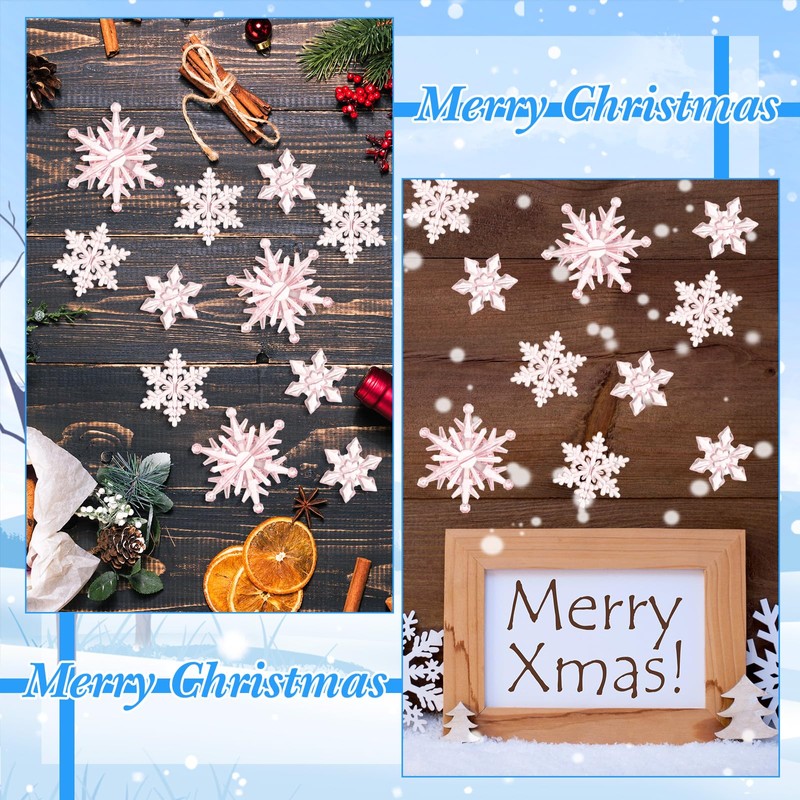 - Package Quantity: you will receive 48 pieces christmas crystal snowflakes ornaments, 3 Styles pink snowflakes pendants with different shape designs, large quantity and different size can meet your different needs, catering to festival and happy Christmas atmosphere