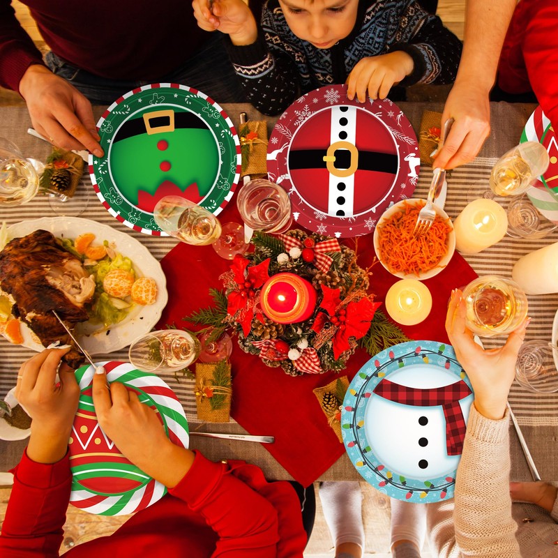 - 4 Christmas Themed Designs - Our plates are decorated with super cute patterns such as Santa Claus Belt, snowman scarf, elf costume, Christmas ball, and candy cane, leaving your guests with an unforgettable memory.