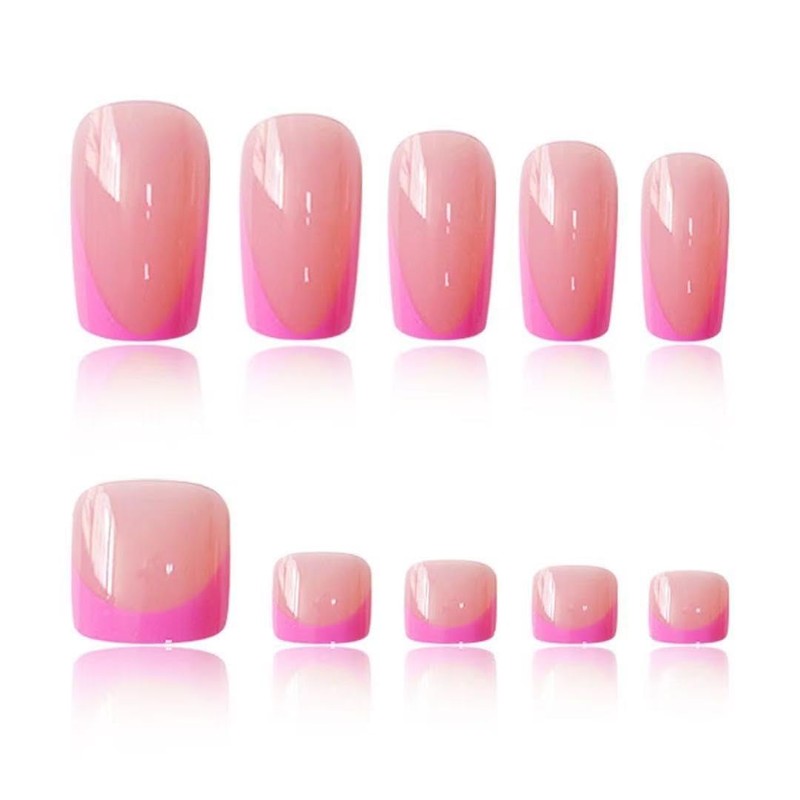 48 Pcs Pink French Tip Press on Nails & Press on Toenails Set, Short Fake Toe Nails Glossy Acrylic Artificial ToeNails Square False Nails Full Cover Stick on Nails for Women
