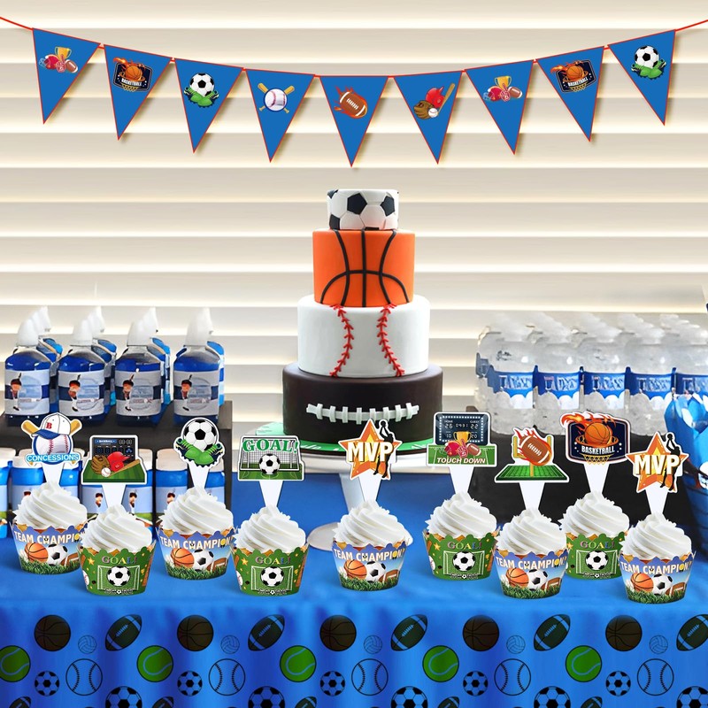 48 piezas temáticas de bolas, recuerdos deportivos para cupcakes y envolturas, suministros de fiesta temática, béisbol, fútbol, baloncesto, magdalenas para niños, adolescentes, tema deportivo, decoración de fiesta de cumpleaños