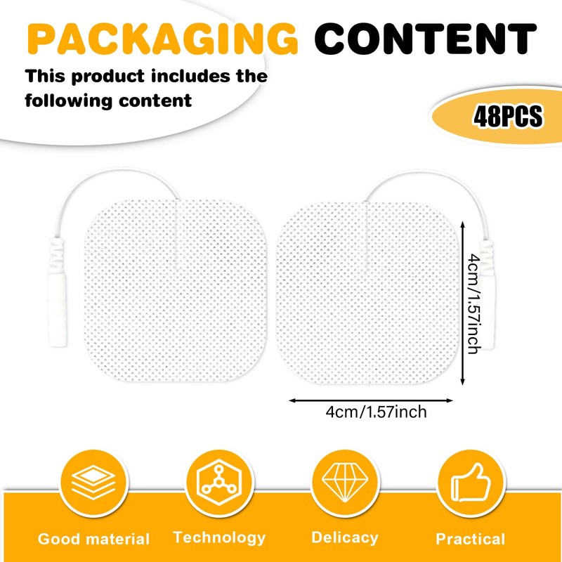 48 Stück Tens Elektroden Pads, 4x 4cm Nachkaufset selbstklebende Gel-Elektroden Pads, Klebeelektroden, Tens Geraet Elektroden, Selbstklebende Ersatzpads, Geeignet für Tens-Geräte und Ems-Trainer