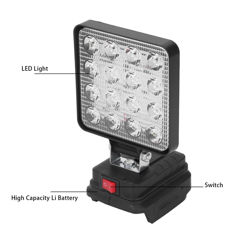 48 W 4800 Lm Arbeitsleuchte mit 16 LEDs, 3-Stunden-Netzschalter, Niederspannungs-Schutzblende für BL1850 18 V Li-Akku, Ideal für den Einsatz Im Freien, Im Automobilbereich und Im