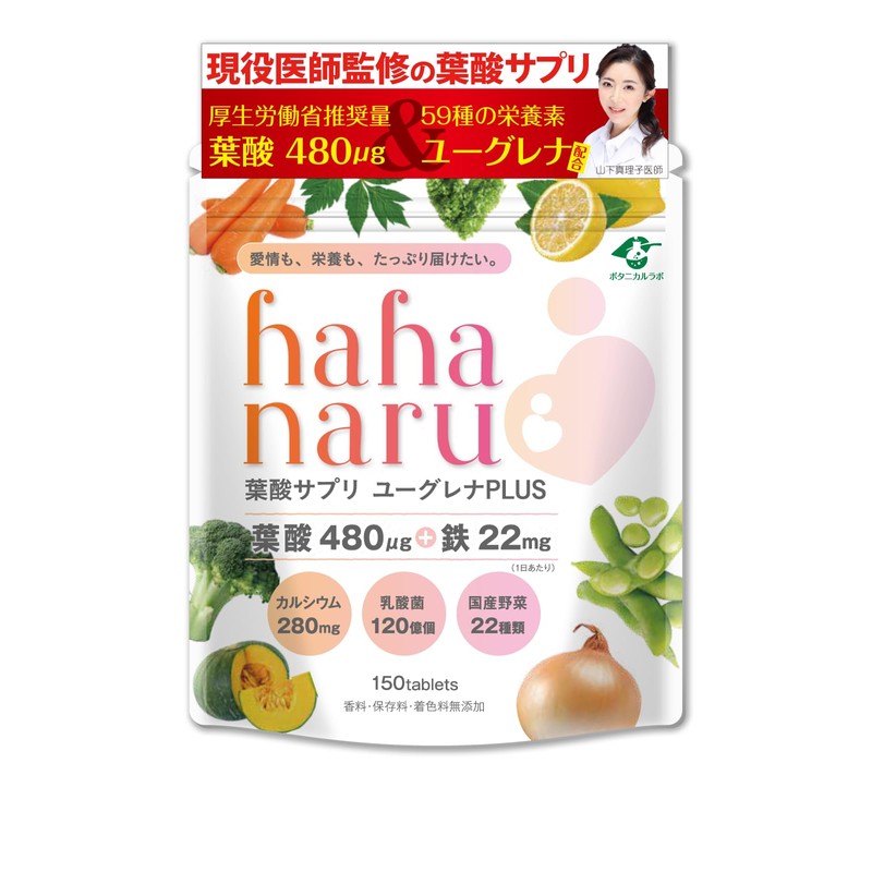 【医師監修】厚生労働省推奨 葉酸 480μg 妊婦 妊娠 妊活 サプリメント 鉄 カルシウム 国産野菜22種 配合 1か月分 hahanaru葉酸 ボタニカルラボ