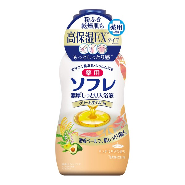 【医薬部外品】薬用ソフレ 濃厚しっとり入浴液 リッチミルクの香り 本体480mL 入浴剤(赤ちゃんと一緒に使えます)