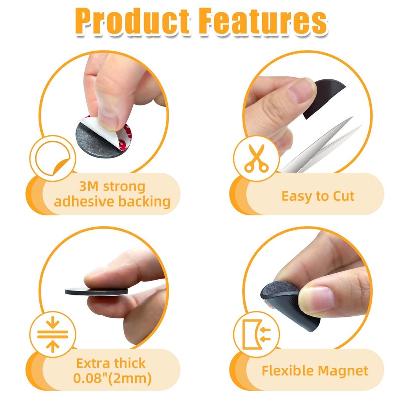 Perfect For: DIY Craft Projects Fridge Magnets Whiteboard Accessories Home and Office Organization School and Educational Projects Scrapbooking and Photo Displays How to Use: Clean the surface where you want to apply the magnet. Peel off the adhesive backing. Press the magnet firmly onto the desired surface. Allow the adhesive to set for a few hours for maximum hold. Why Choose Our Round Magnets? High-Quality Material: Made with premium magnetic and adhesive materials for reliable performance. Easy to Apply: The precut design and strong adhesive make application quick and hassle-free. Endless Possibilities: From crafting to organizing, these magnets offer endless creative possibilities.