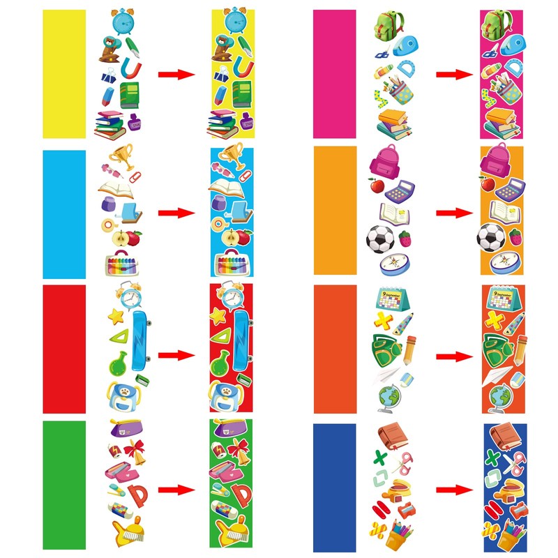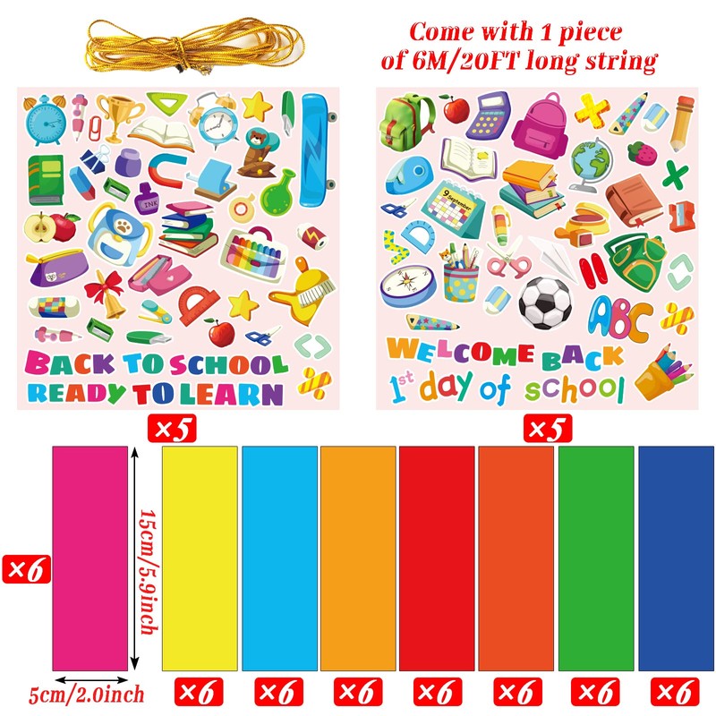 - 【Package Include】for each back to school first day of school craft kits, you will receive 48 pieces bookmark cards ( in 8 styles ) that measures about 15x5cm/6’’x2’’ and 12 sticker sheets (including over 300 pieces self adhesive stickers ) to let your kids create their own back to school first day of school bookmarks. You will also get a 6M/19.6FT long string to hang the finished bookmarks.
