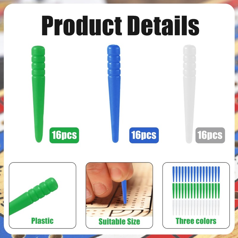 - Product Includes: You can receive 48 pieces of cribbage board pegs in 3 colors: green, blue and white, 16 of each color, sufficient quantity and 3 colors to meet your game need and replacement.