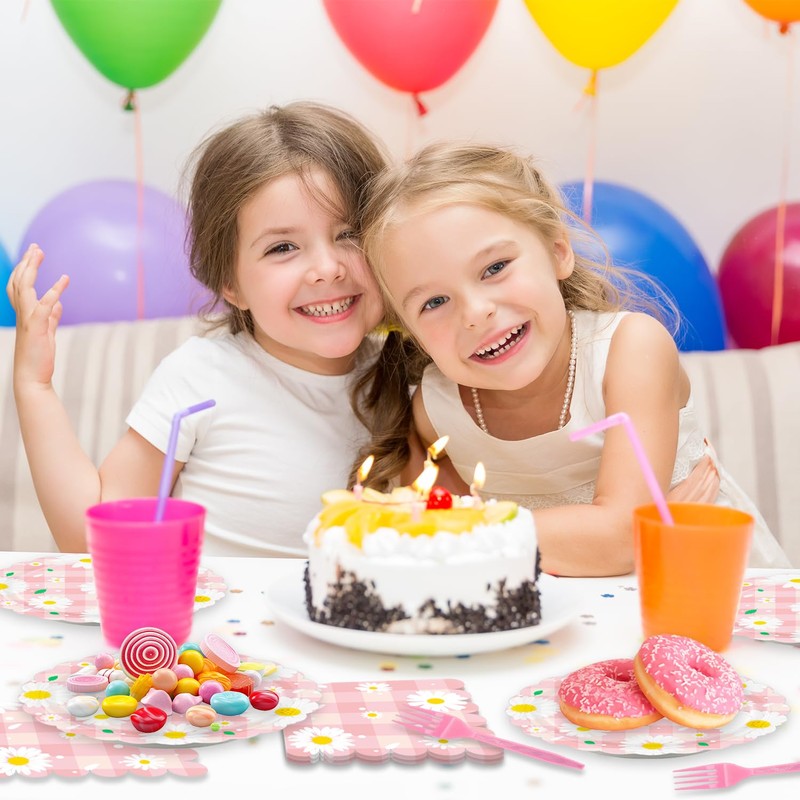- The set includes:16pcs Daisy Birthday Dessert plate and 16pcs party tissues,16 Party Fork,suitable for 16 guest family Party.